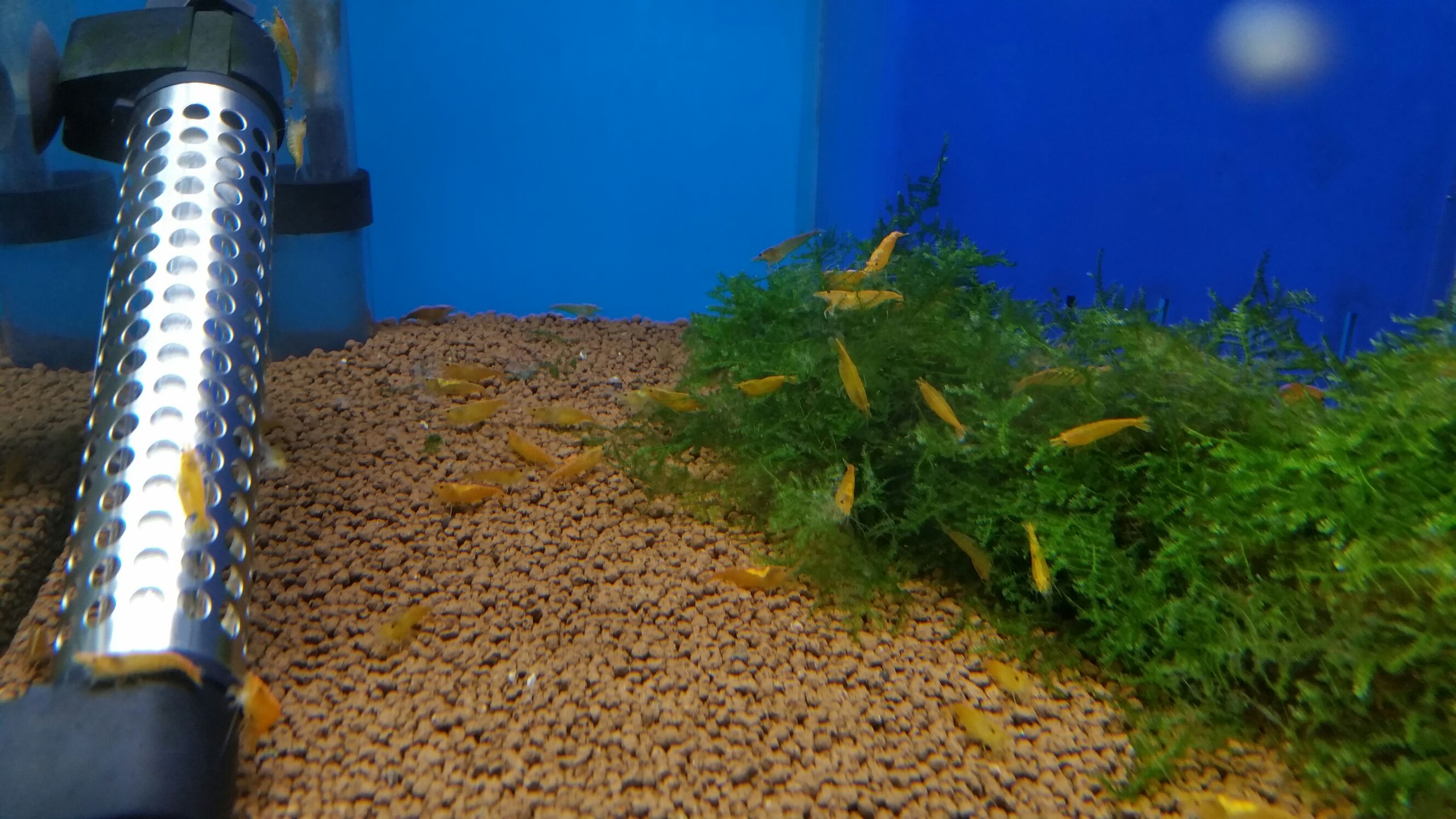 モス付きの流木に群がって、せかせかお食事しています♪