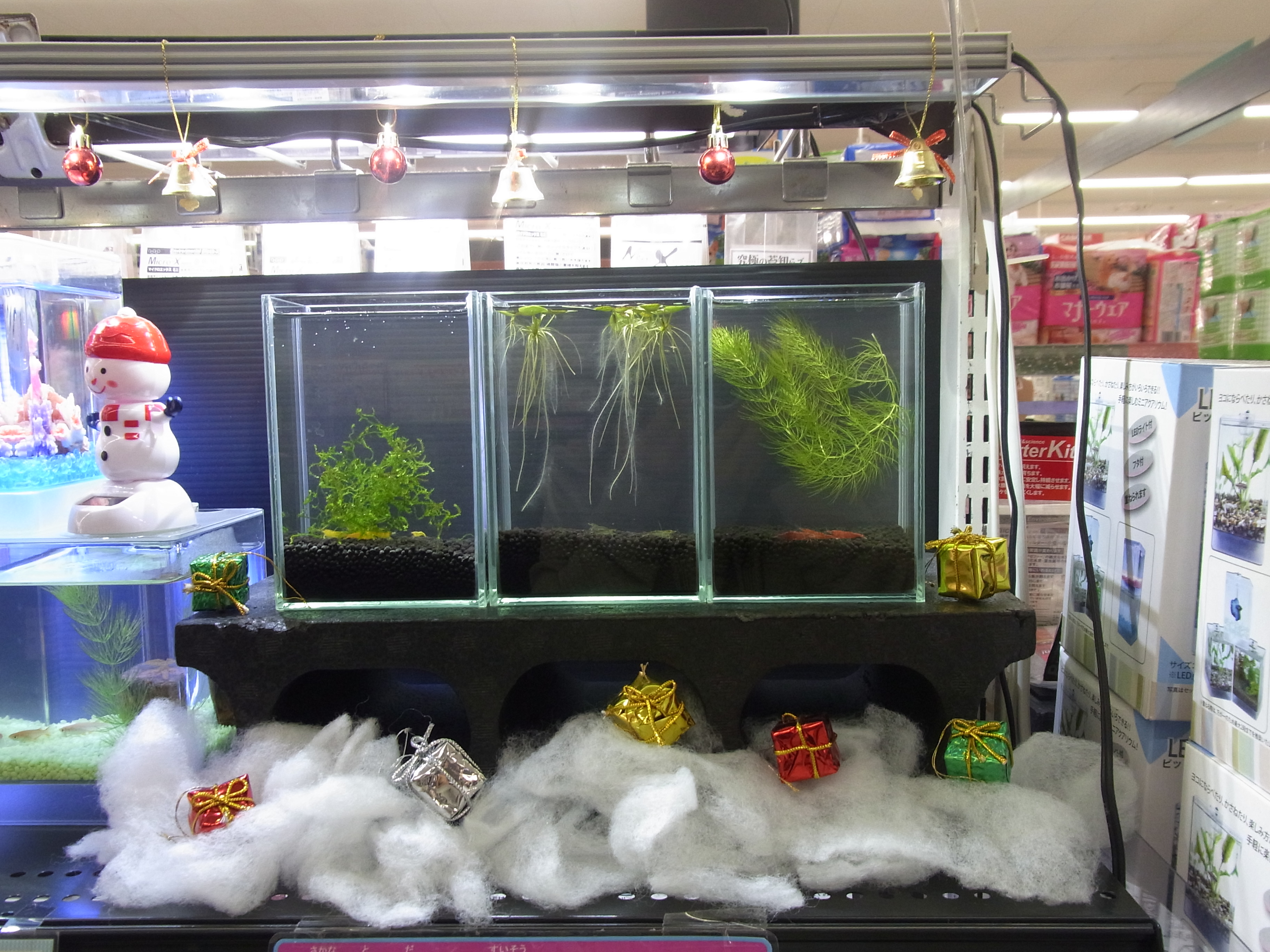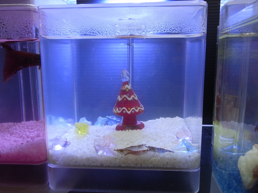 クリスマスらしく小さいツリーと一緒にレッドチェリーシュリンプが入ってます。