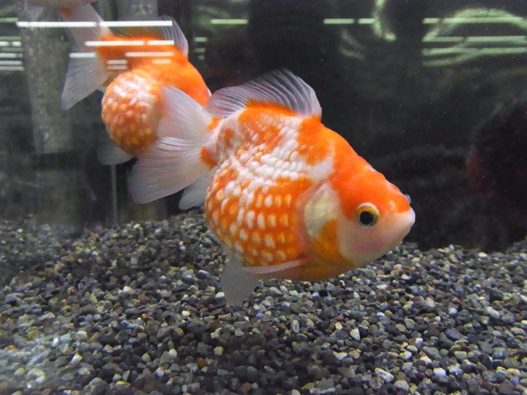 独特な鱗を持ち、真ん丸い体で必死にフリフリ泳ぐ姿が可愛らしい金魚です。