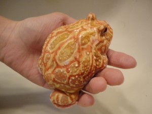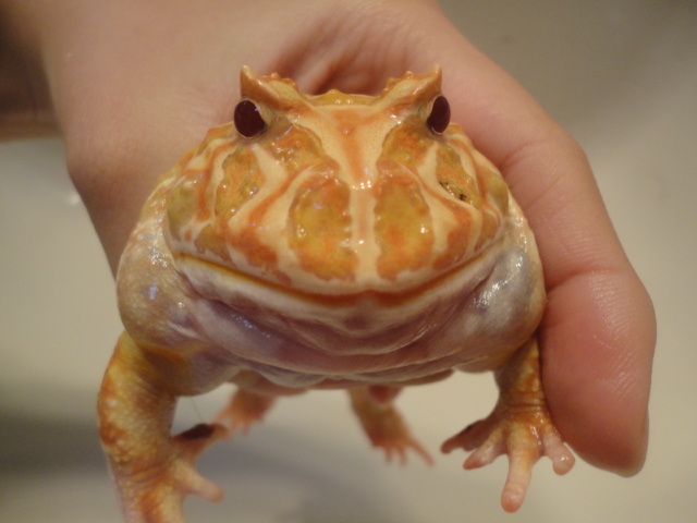 今日は我が家のケロちゃん(クランウェルツノガエル)と同伴出勤♡笑