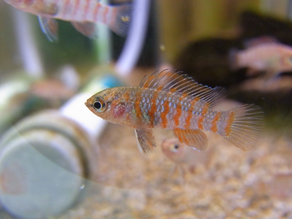 赤いシマシマの小型魚です。