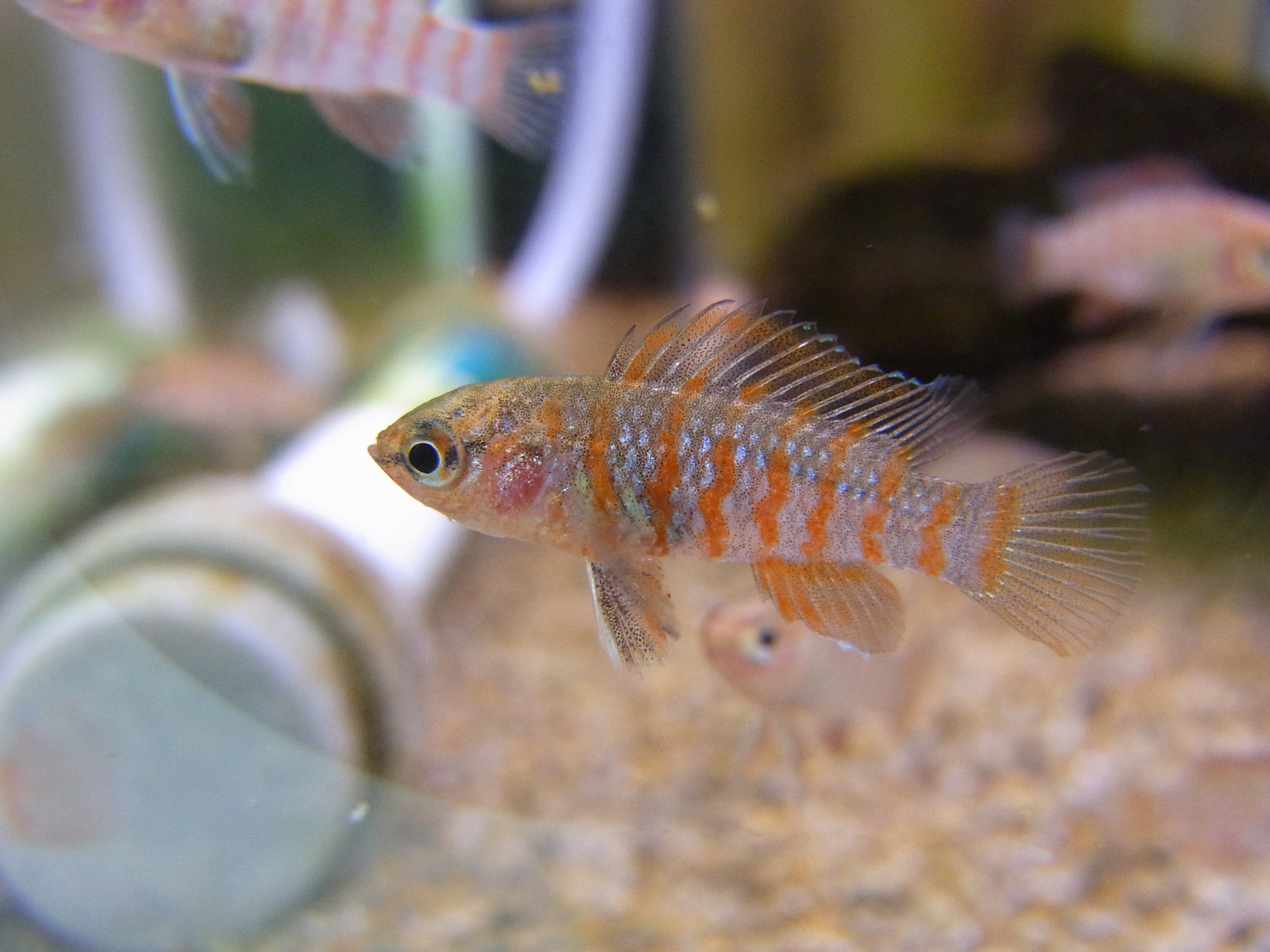 グッピーやネオンテトラと違ってスイスイ泳ぎませんが、