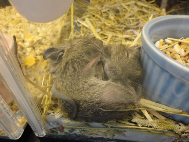 写真は2匹寄り添って寝ているデグーの寝顔♡可愛い~♡