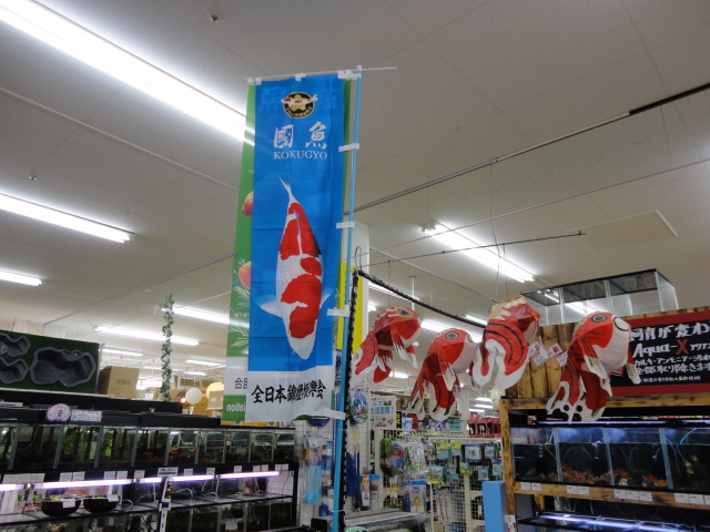 錦鯉と金魚ののぼりを設置しました\(^o^)/