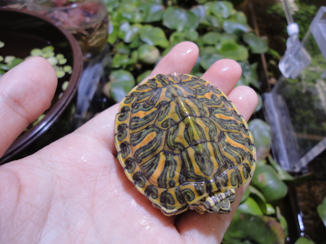 リオグランデ川に生息するアカミミガメで、ミシシッピーアカミミガメと比べ甲羅の模様がきれいです。