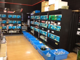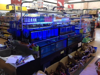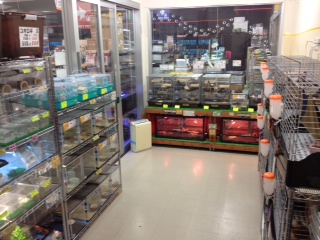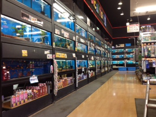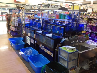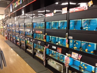 熱帯魚売り場と、奥が金魚・川魚売り場になってます。