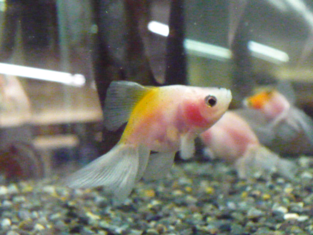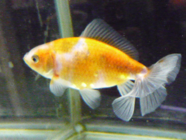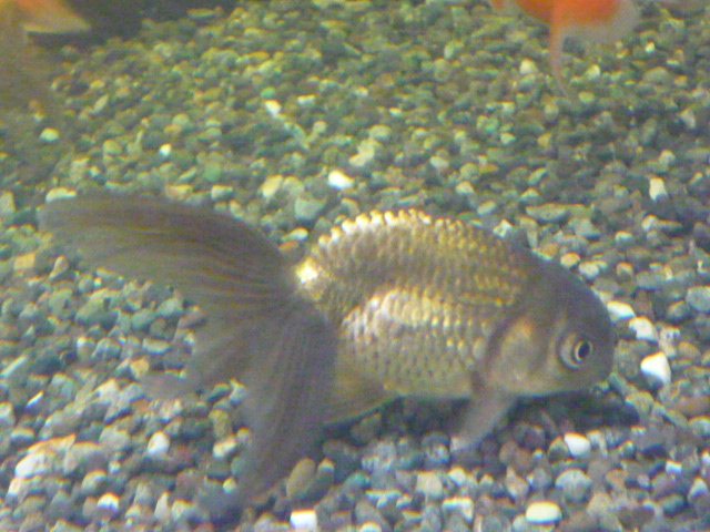 通常の琉金よりも大きくヒラヒラした尾鰭を持っています。