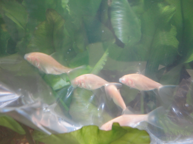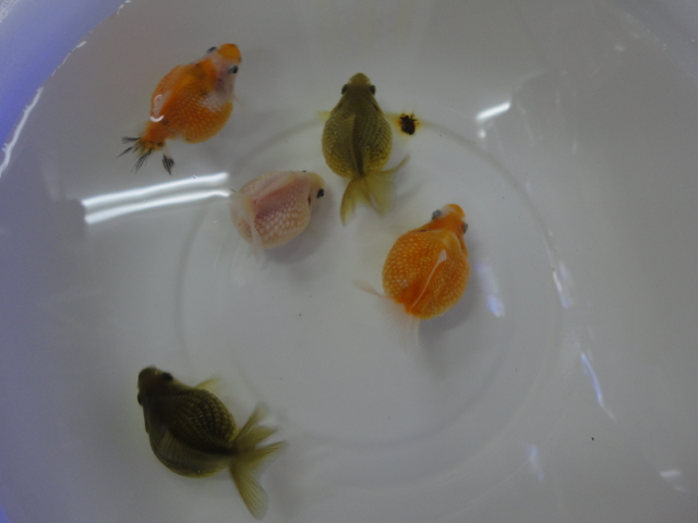 アルビノ三尾和金は、アルビノ和金出目金もどきが1匹混じってます(笑)