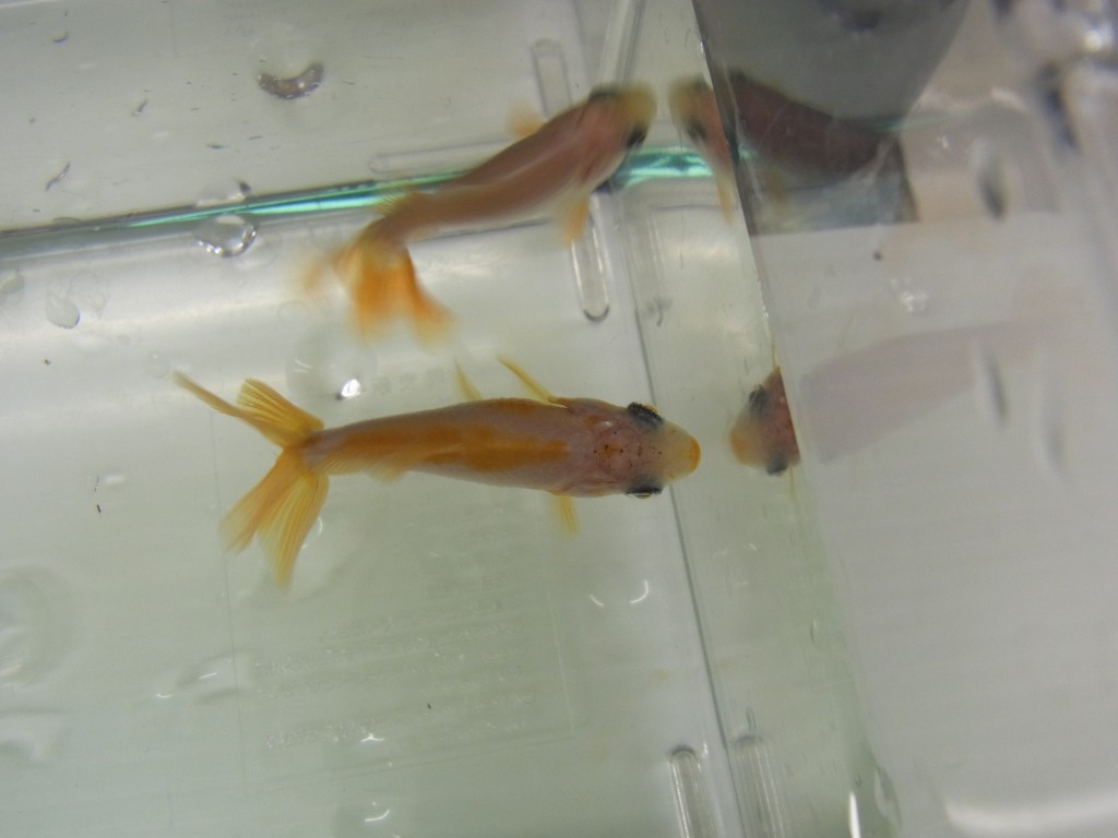 上から見ても普通の金魚とは違うのが一目瞭然です。