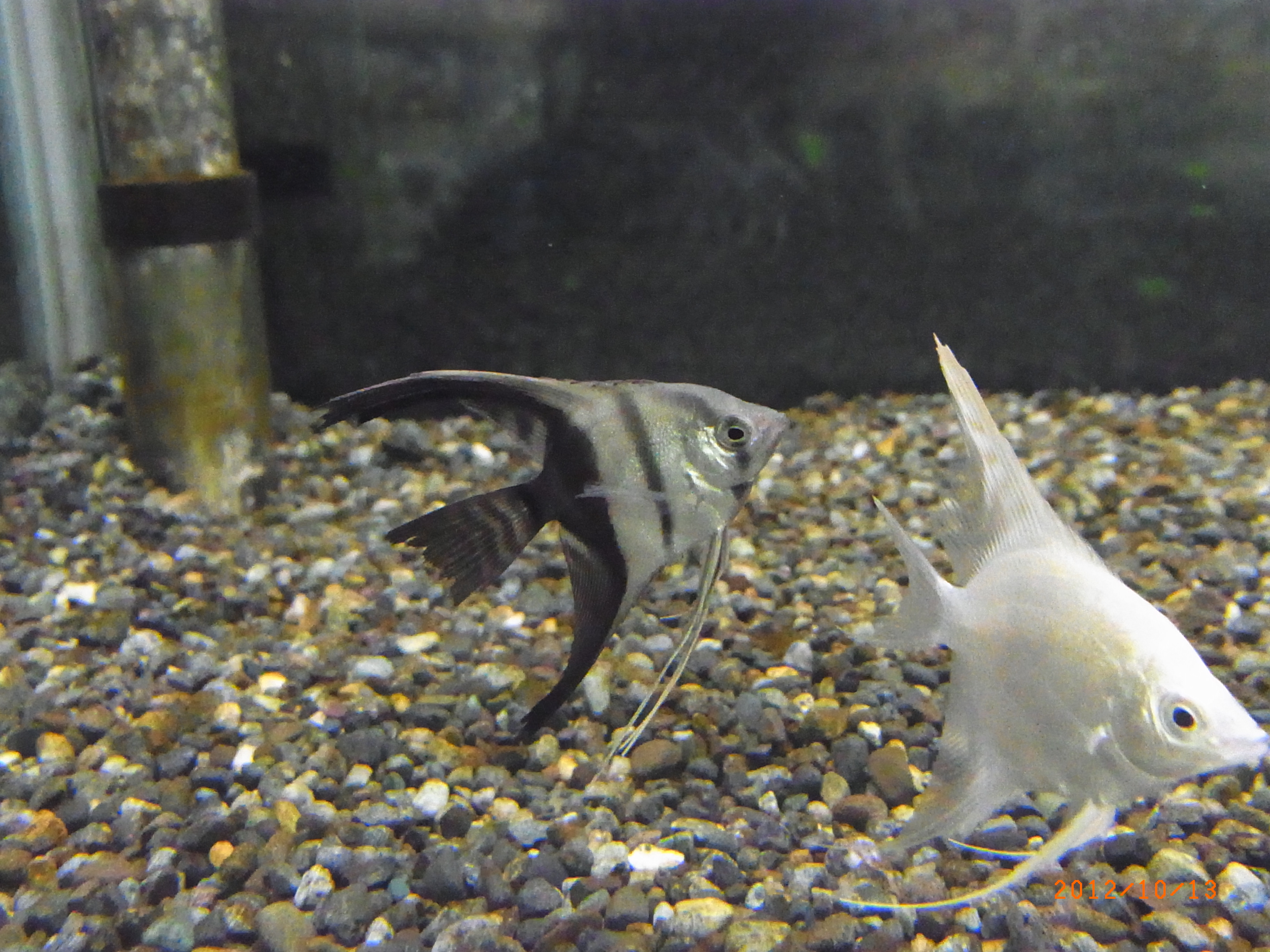 白と黒の体色で各鰭が他の種類より長いエンゼルです。