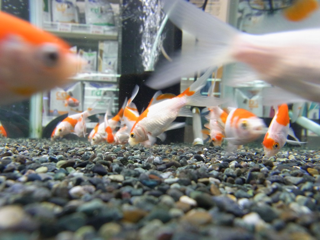 スッとした紅白の体に長い尾が特徴の金魚です。