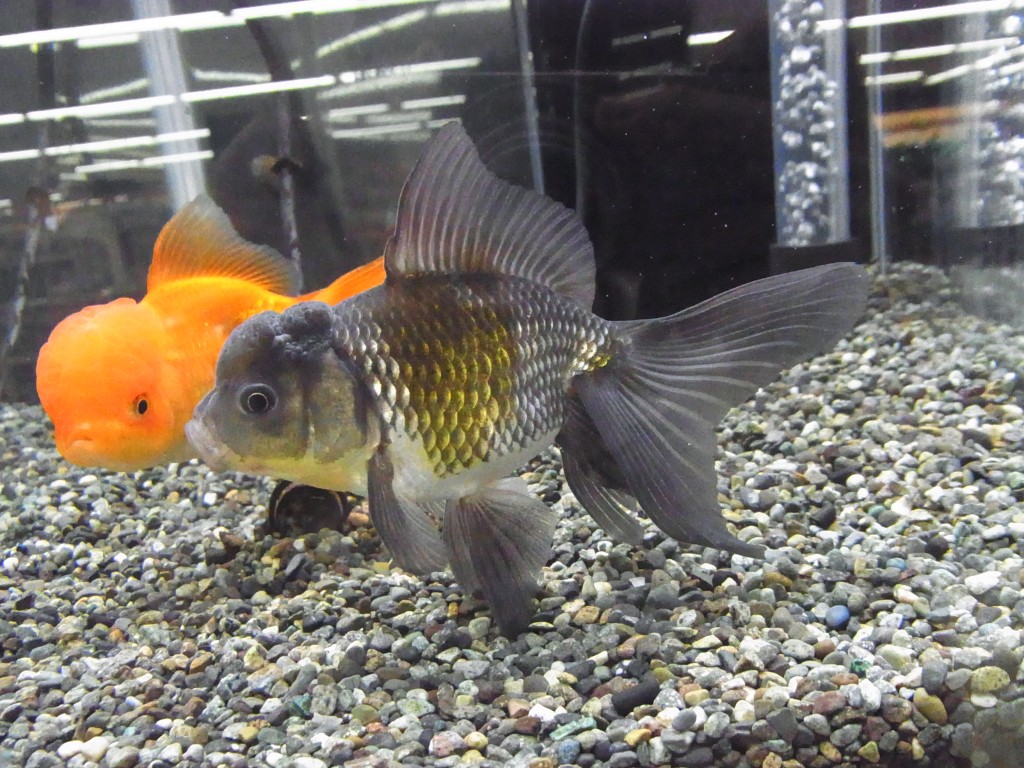 渋みのある黒がかった銀の体色に頭に肉瘤があるのが特徴の金魚です。
