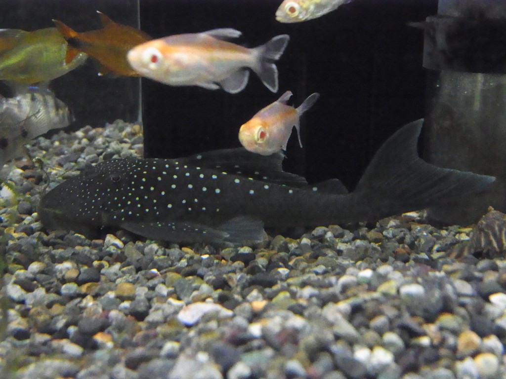 青い体に白いドットが散りばめられた美しプレコです。