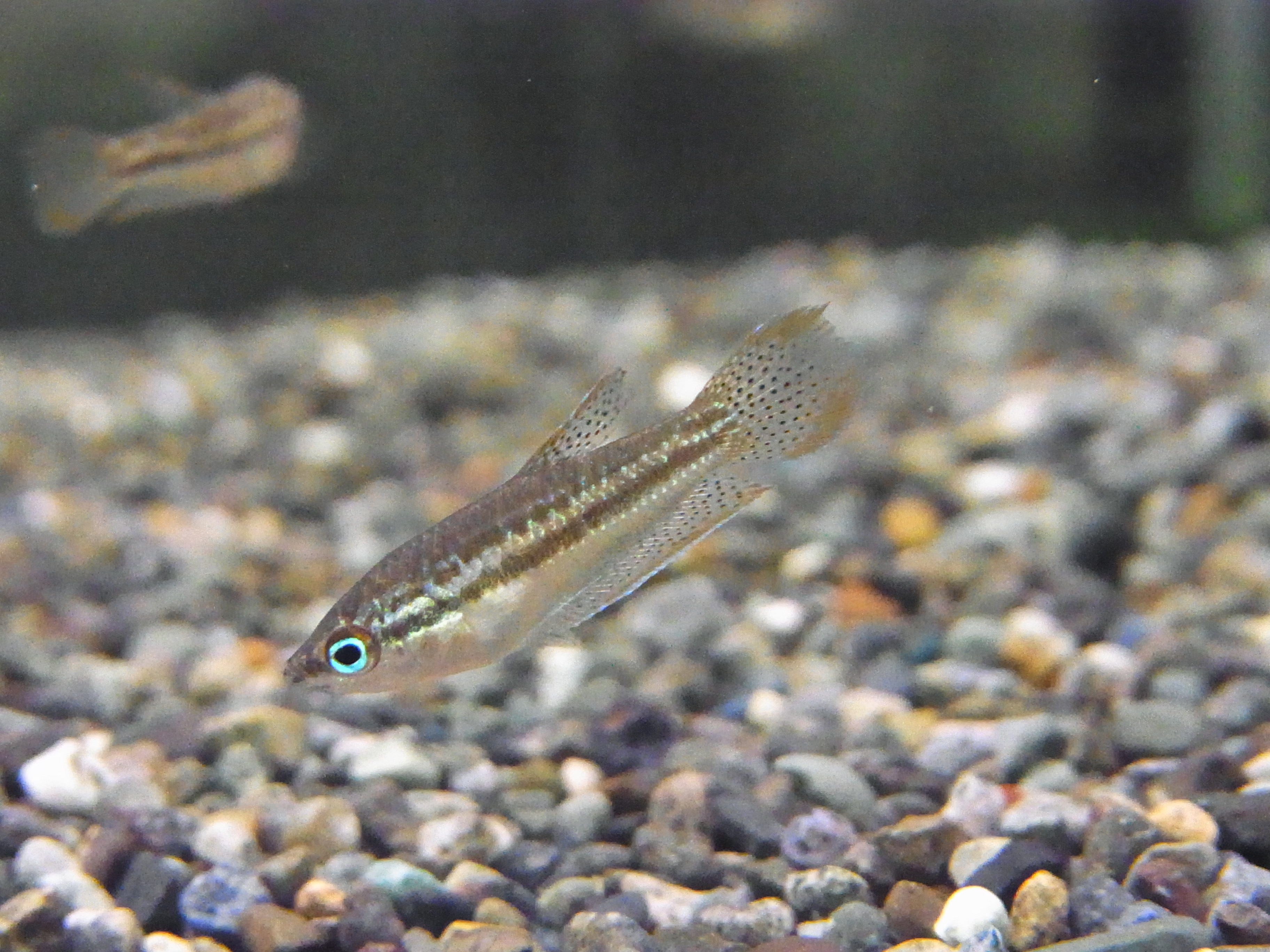 ネオンテトラに似てますが、頭の青と体がキラキラ光っているのが特徴です。