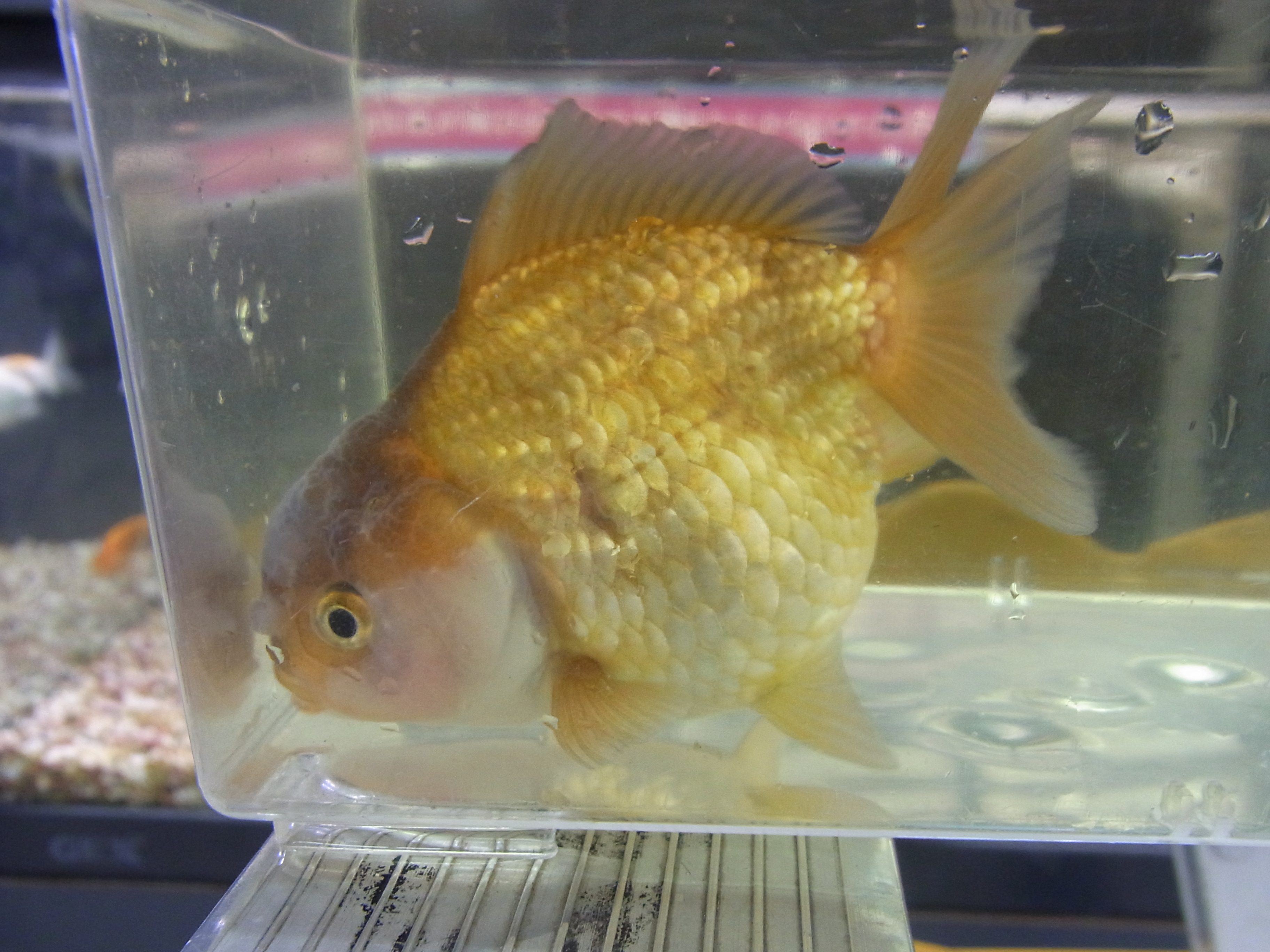 背びれのない体が特徴のランチュウに背びれ付いたランチュウです。