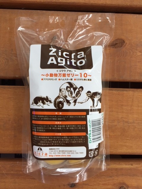 右のコが夢中で食べてるオレンジ色のものはZicraの小動物用ゼリーです。