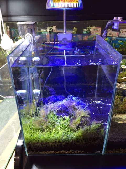底面フィルター使用。コケも出ずほぼ足し水のみで維持していたんですが、このところコケがでるように・・・
