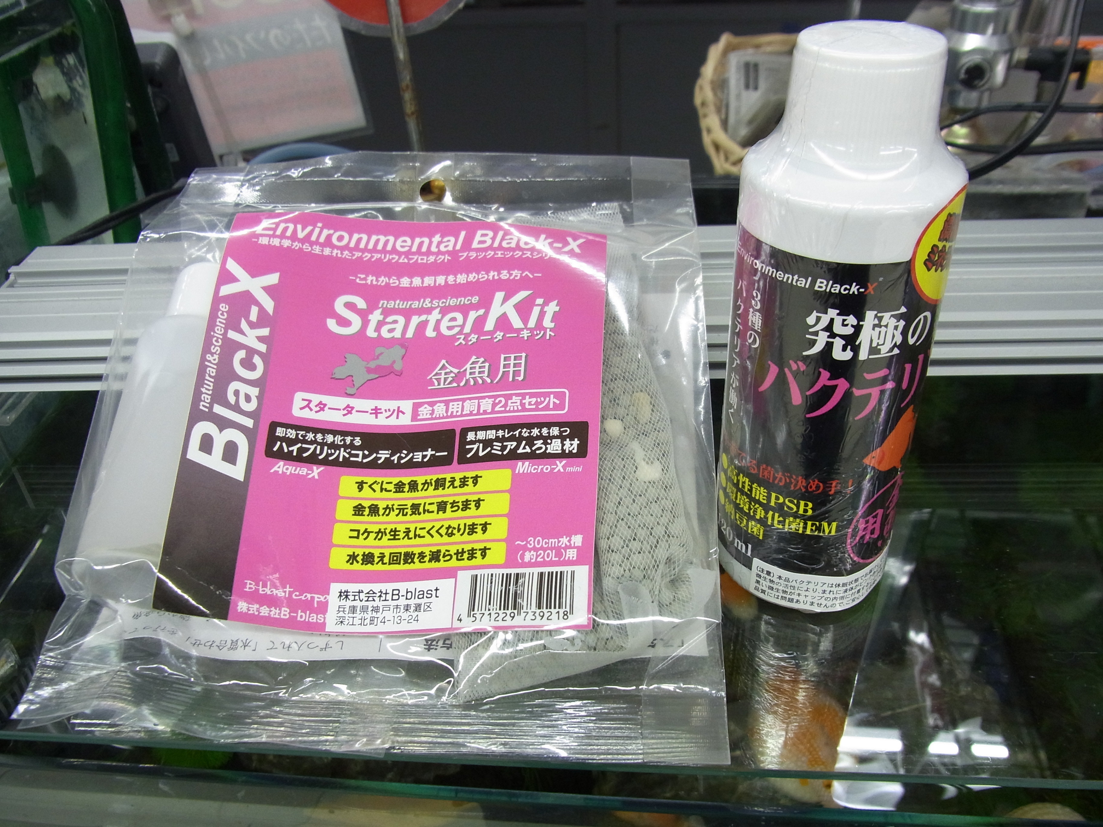 (左)スターターキット 金魚用 (右)究極のバクテリア 金魚用