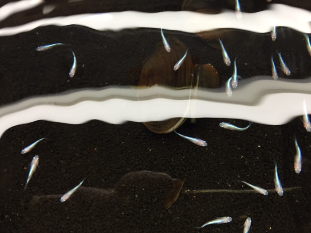 ここにはただいま特価にて販売中のミユキメダカがスイスイ~