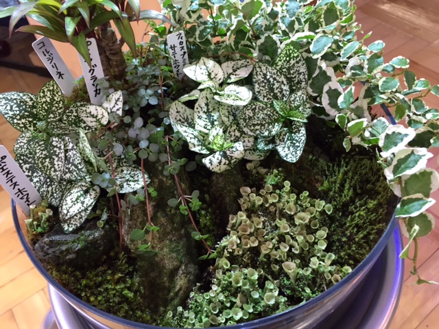 奥に葉っぱ系。手前に苔を敷き詰めました。